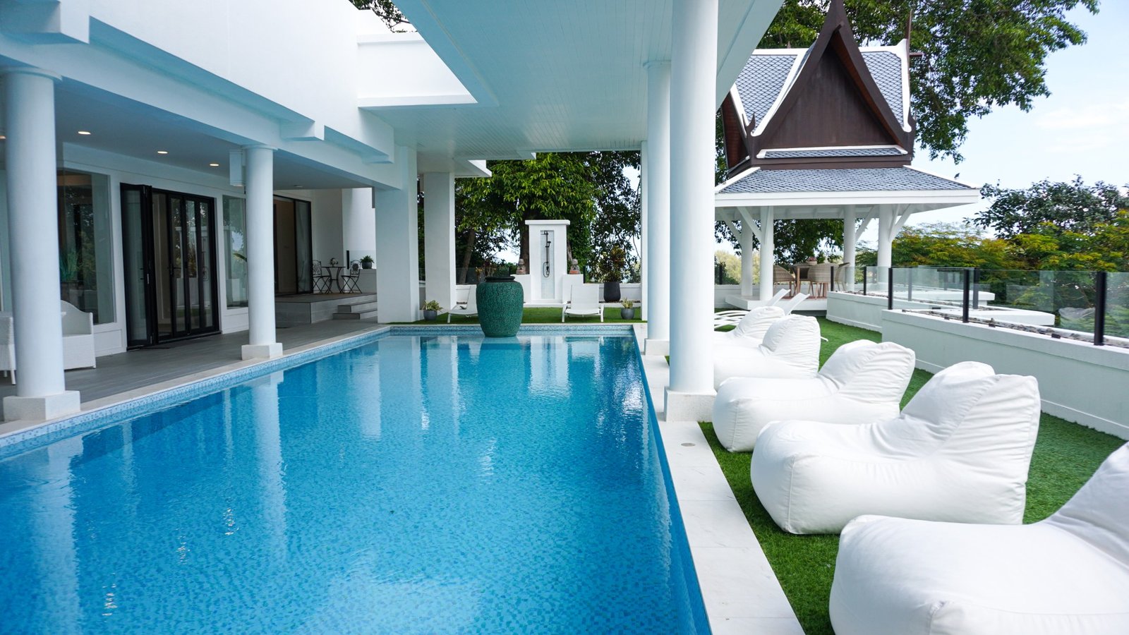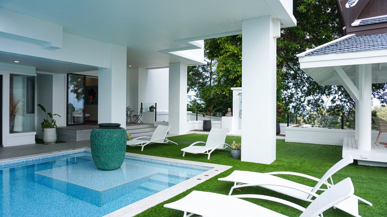 • Serene private pool and lush garden.